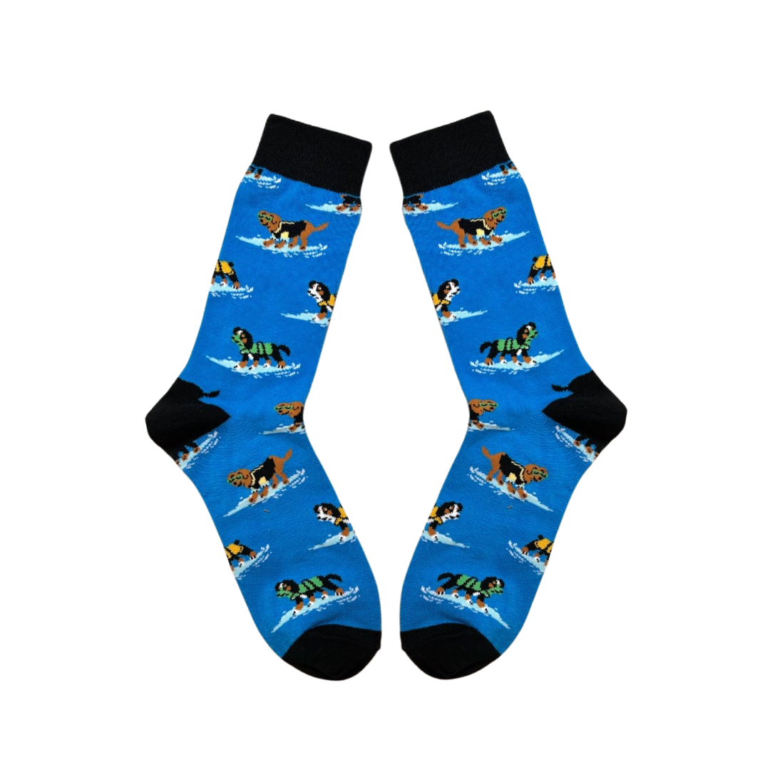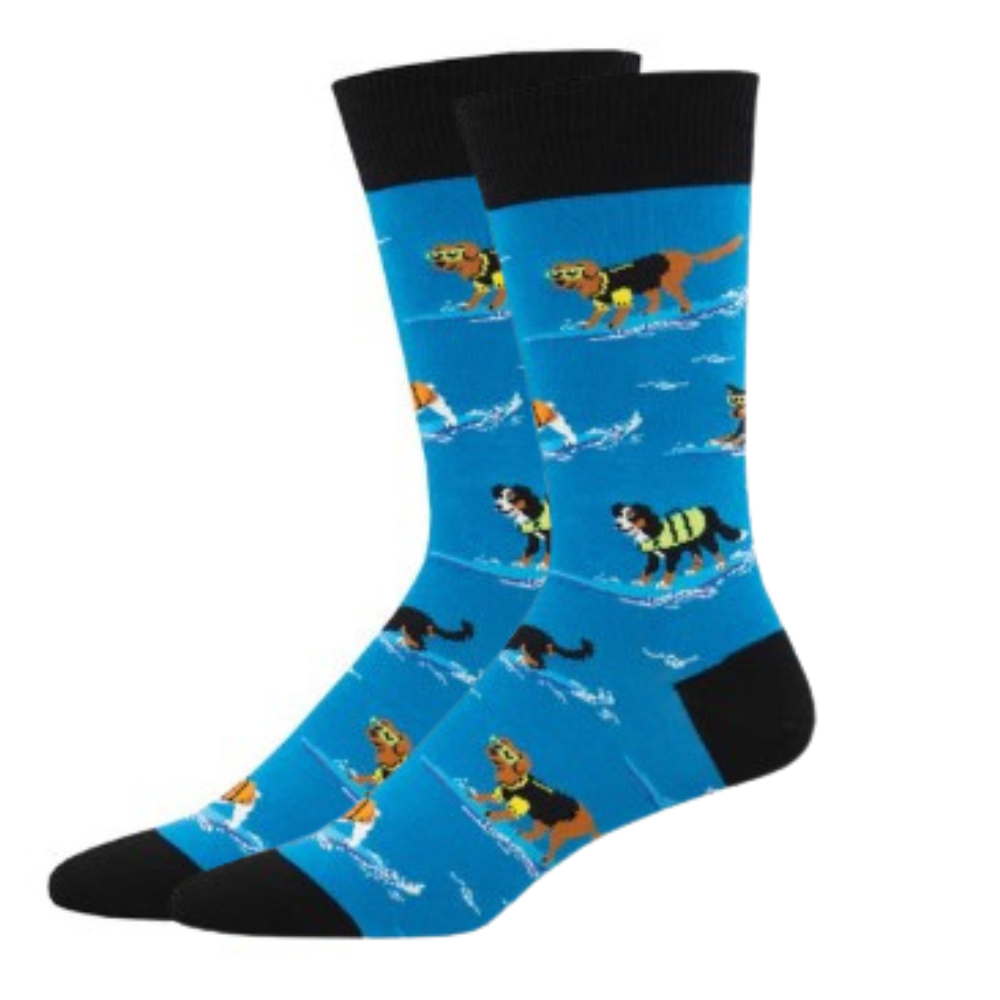Get ready to ride the waves with Surfer Dog Socks! These playful socks feature adorable pups catching waves, while every purchase supports a great cause. Surfing has never been so cute and impactful. (Woof!) Style: Crew